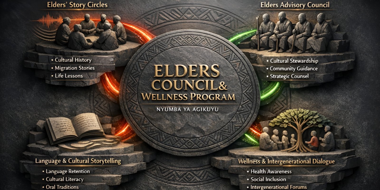 The Elders Council & Wellness Program at Nyumba Ya Agikuyu is dedicated to honoring elders, preserving cultural wisdom, and strengthening intergenerational connections within the community. By providing opportunities for elders to share their knowledge, participate in community decision-making, and engage in wellness activities, this program ensures that the experience, guidance, and cultural heritage of older generations remain a vital part of community life.